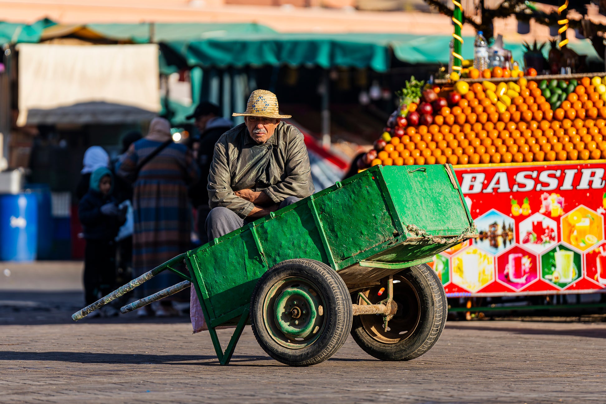 The carriers are heading to Jamal El Fenaa Square to get occupied especially in the mornings, you can see many enquiring this man power carriers around the Medina of Marrakesh. We had a coffee break wit Mustafa and I was chasing if I could manage to capture interesting mood of the carriers and this photograph is belong to that moment.